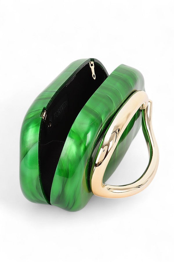 Elevate your evening attire with this exquisite Gold Iconic Handle Marble Resin Box Clutch, a perfect blend of elegance and functionality. Designed to add a touch of sophistication to any outfit, this clutch is ideal for formal events, weddings, or a night out with friends. The sleek design and luxurious materials make it a standout accessory that complements any style.