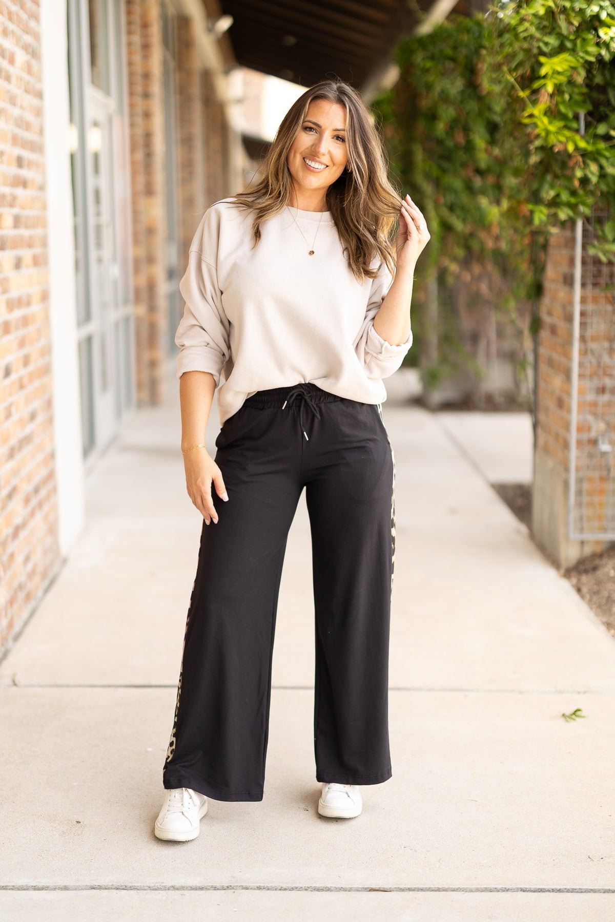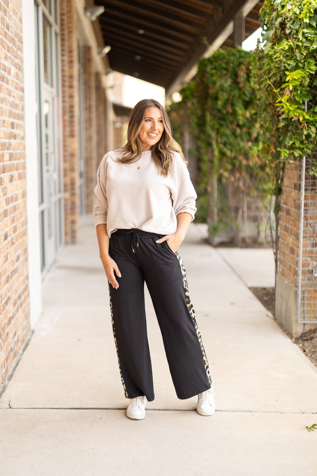 Embrace boldness and comfort with The Chelsea Black Wide Leg leggings, designed to elevate your everyday wardrobe with a touch of wild elegance. These leggings feature a sleek black wide-leg silhouette with a playful leopard panel, perfect for adding a fun and trendy flair to any outfit. Whether you're heading out for a casual day or dressing up for a night out, these leggings provide the perfect blend of style and comfort.