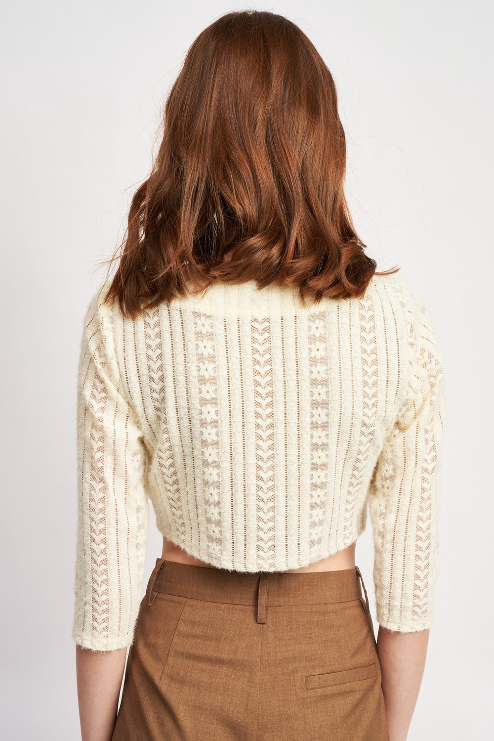Ivory Lace Knit Cropped Top With Eyelet Detail