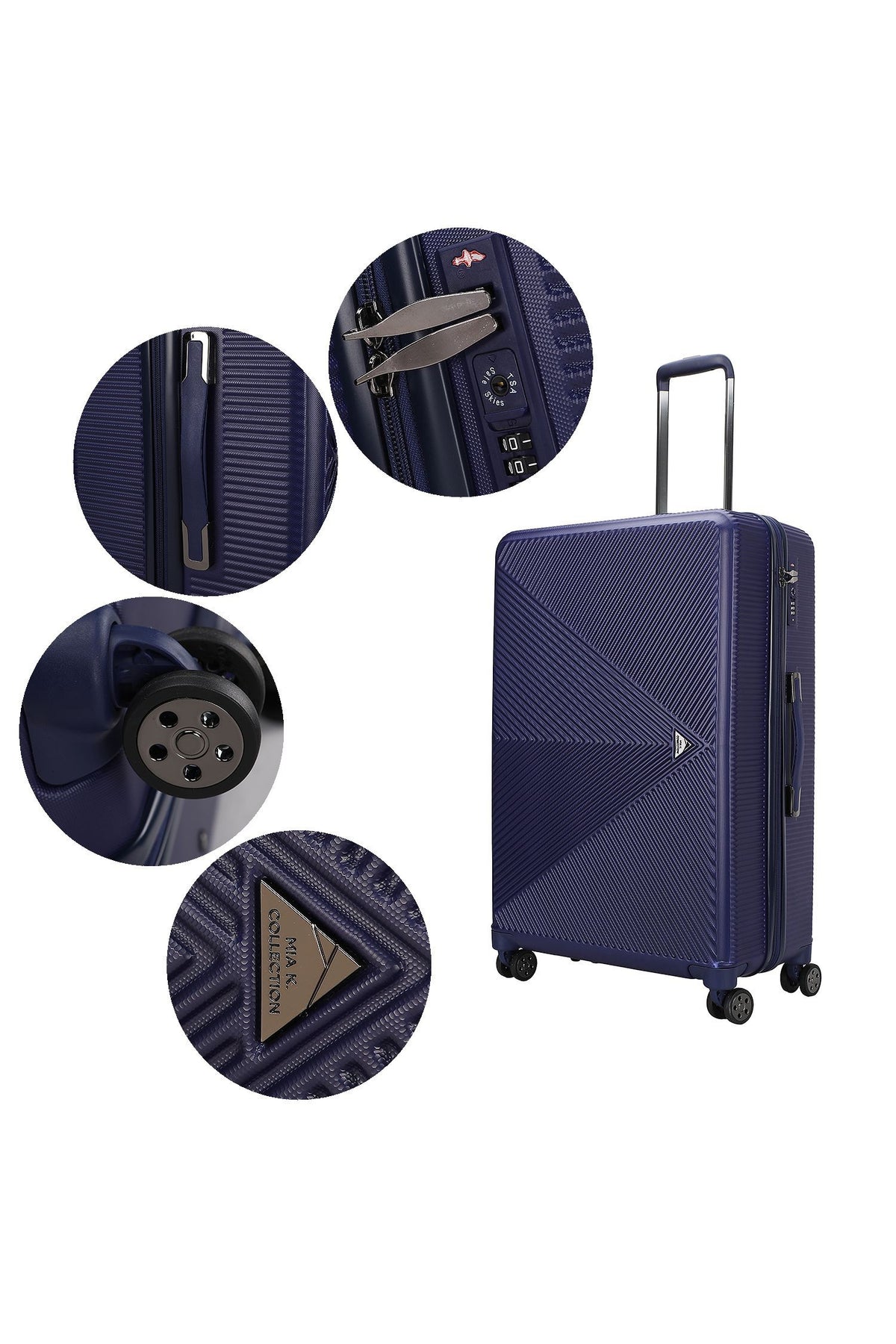 Travel in style with the MKF Felicity Luggage Set, featuring both extra-large and large sizes. Designed for the modern traveler, this set offers durability and convenience with its hard shell abs construction and dual spinner wheels, ensuring smooth navigation through airports and busy streets. The elegant zipper pullers and telescopic handle system with push-button lock add a touch of sophistication while providing ease of use. Secure your belongings with the TSA-approved combination lock and enjoy organized packing with detachable tie-down straps and inside zipper mesh pocket.