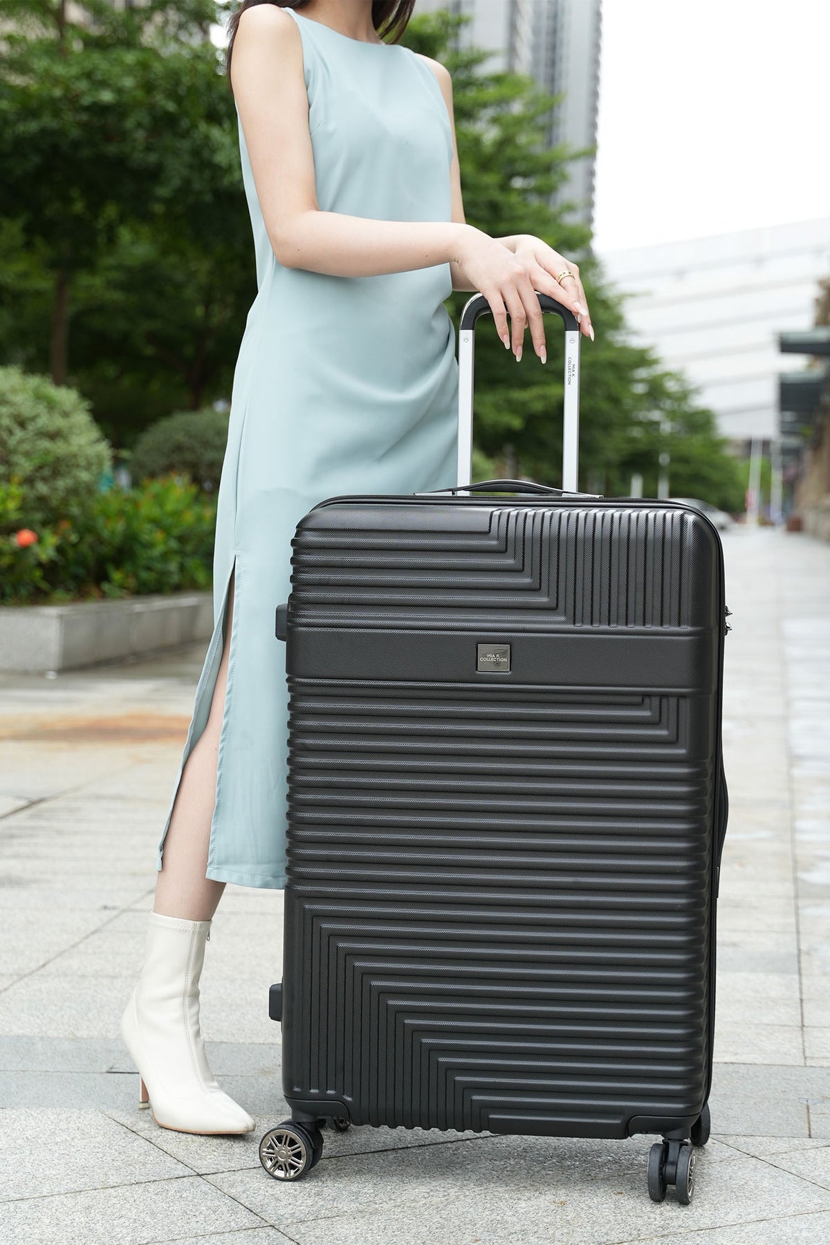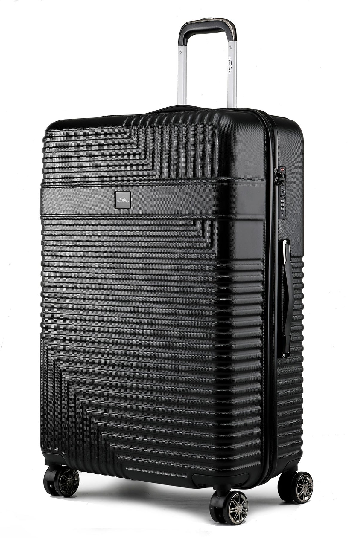 The MKF Mykonos Extra Large Check-in Spinner by Mia K is expertly designed to make your travel both stylish and convenient. This durable suitcase features a hard side shell with a textured finish that withstands the rigors of travel. The 360-degree dual spinner wheels offer effortless maneuverability, making navigation through crowded airports a breeze. With its TSA-approved lock, your belongings stay secure, while the elegant zipper pullers and grip handles on top and sides add a touch of sophistication to your journey. The telescopic handle system with a push-button lock ensures comfortable handling, and the fully lined interior with detachable tie-down straps and an inside zipper mesh pocket keeps your items organized and secure.