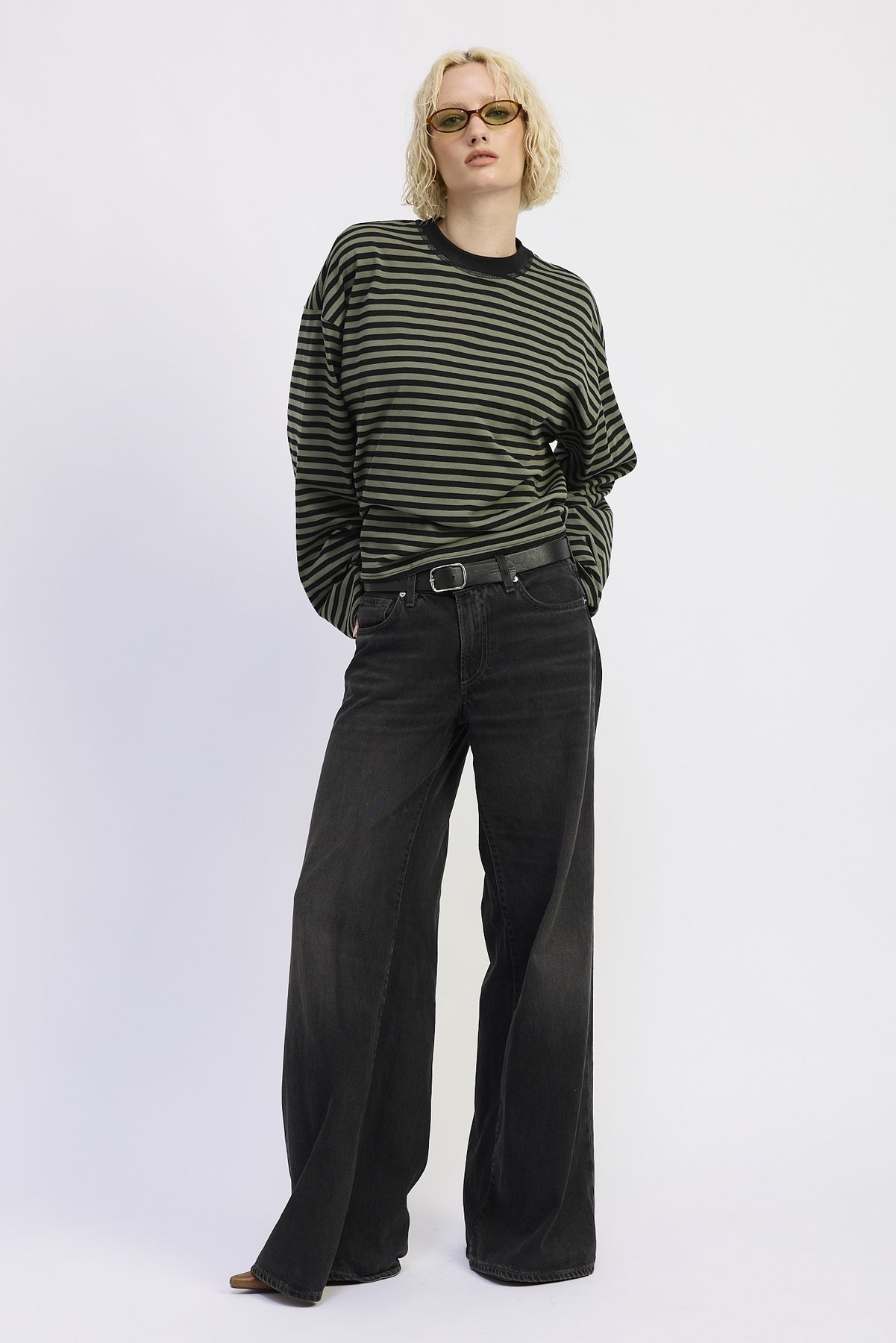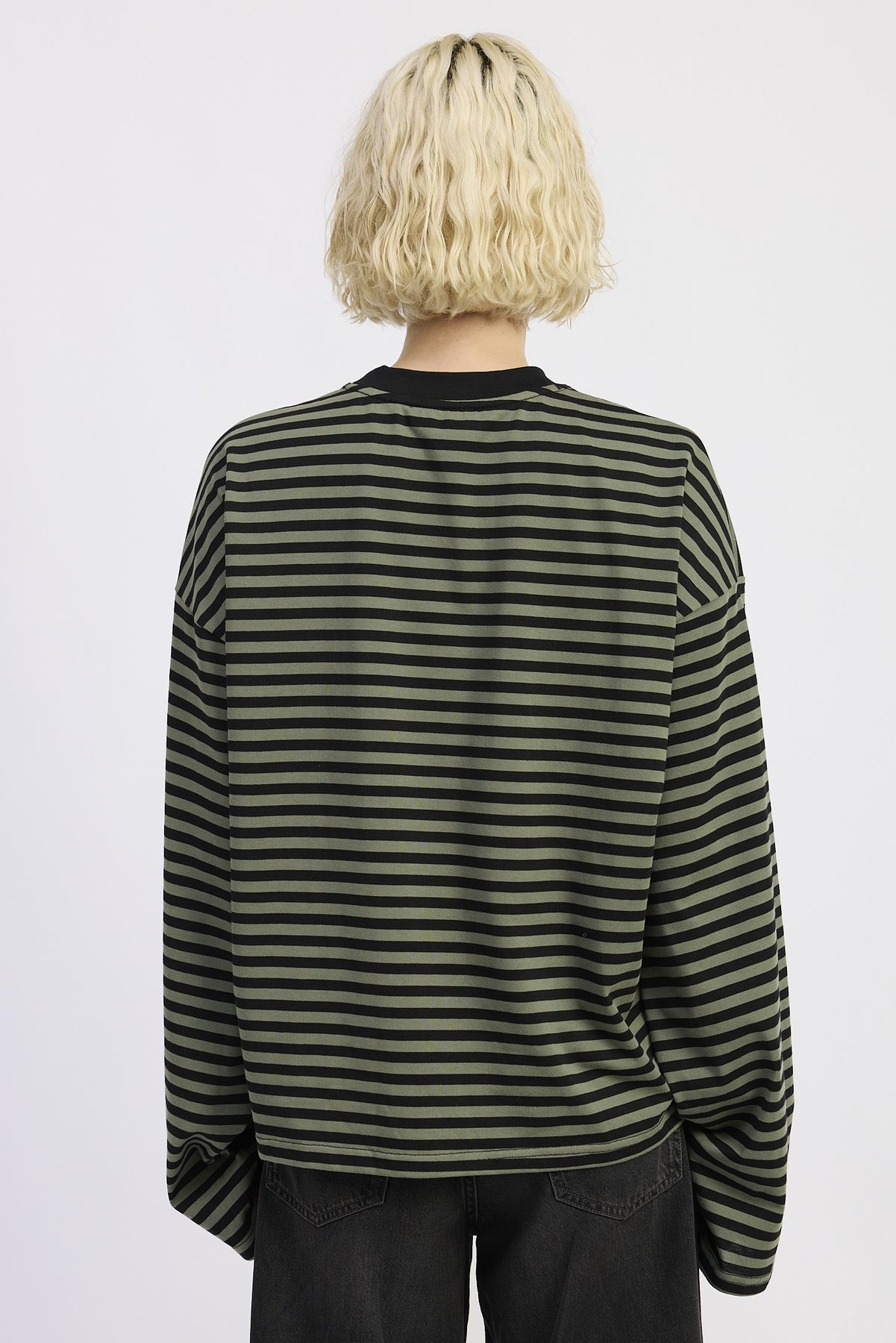 Embrace a chic and effortless look with this oversized striped basic top. Perfect for casual outings or lounging at home, it features an oversized fit that offers both comfort and style. The subtle striped pattern adds a touch of sophistication, making it a versatile addition to any wardrobe.