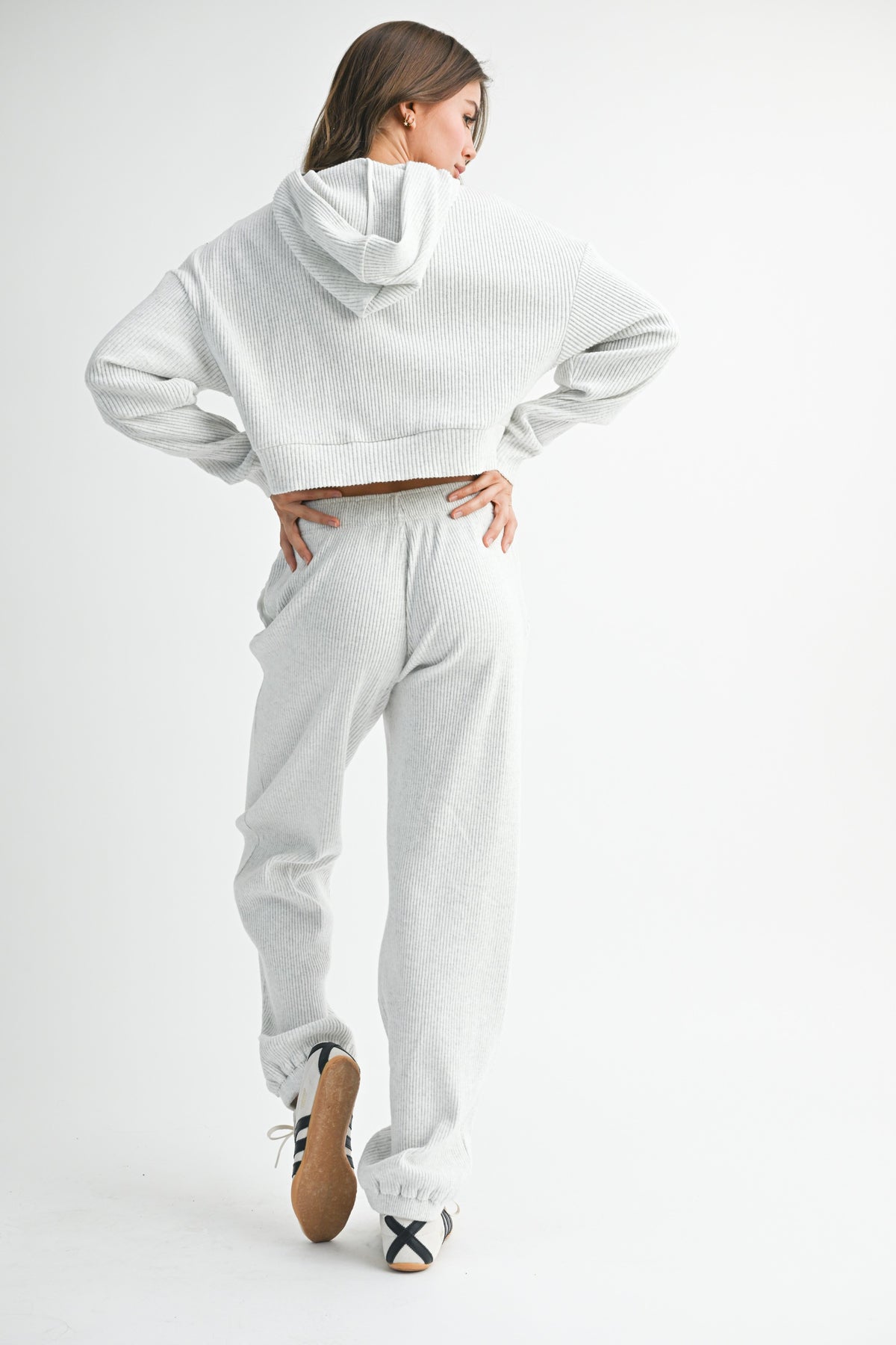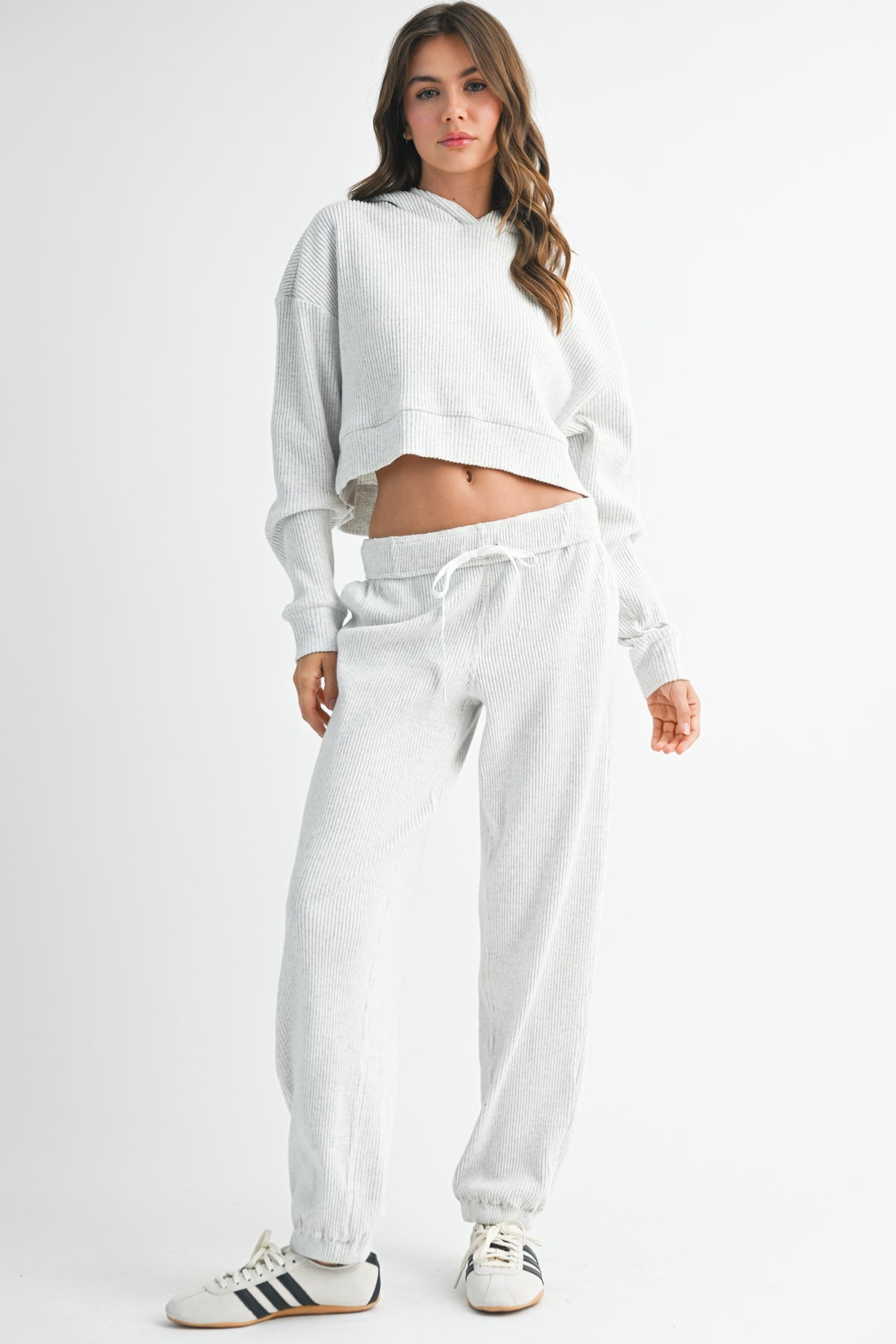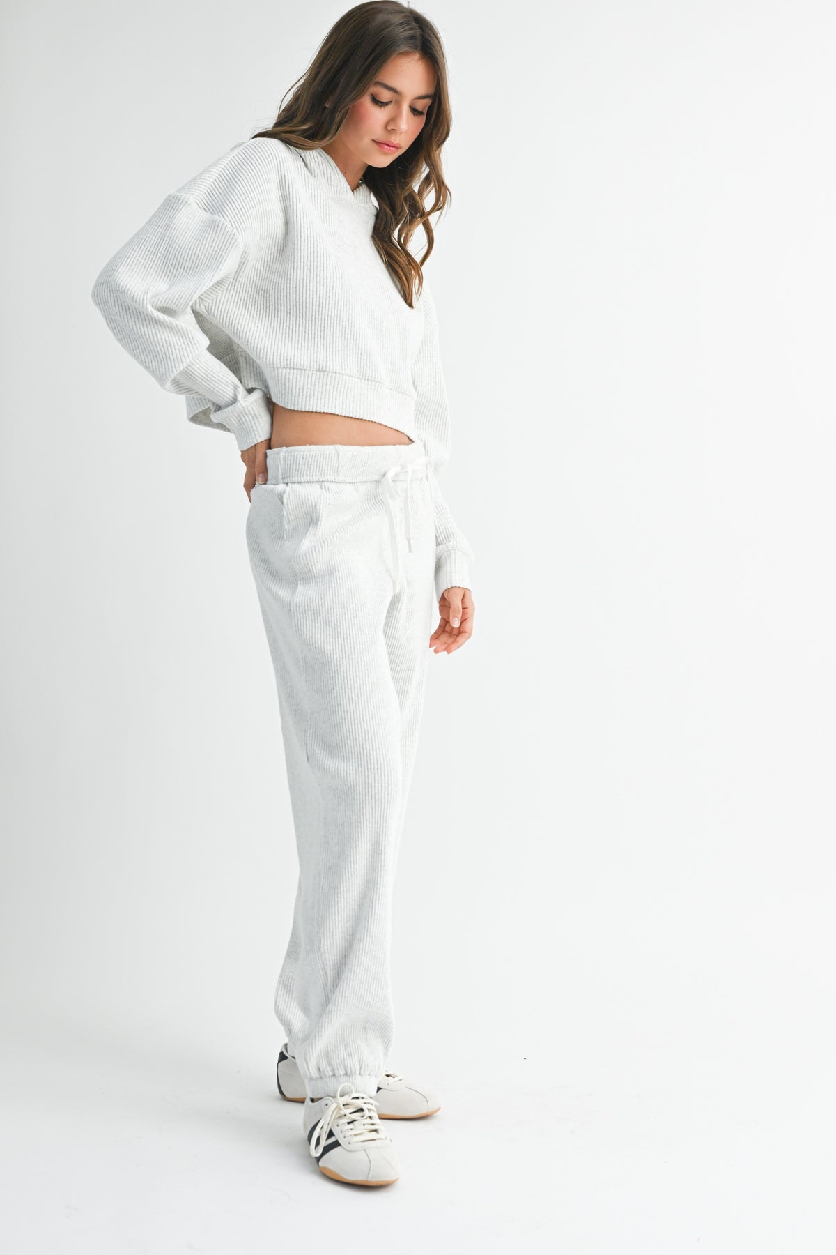 Experience ultimate comfort with the Drawstring Ribbed Lounge Pants, a perfect addition to your casual wardrobe. These high-rise pants are designed with a wide-leg fit and crafted from a soft ribbed knit fabric, ensuring you stay cozy and stylish during your off-duty days. The adjustable drawstring waist offers a customizable fit, making these pants ideal for lounging or easy layering with your favorite tops.