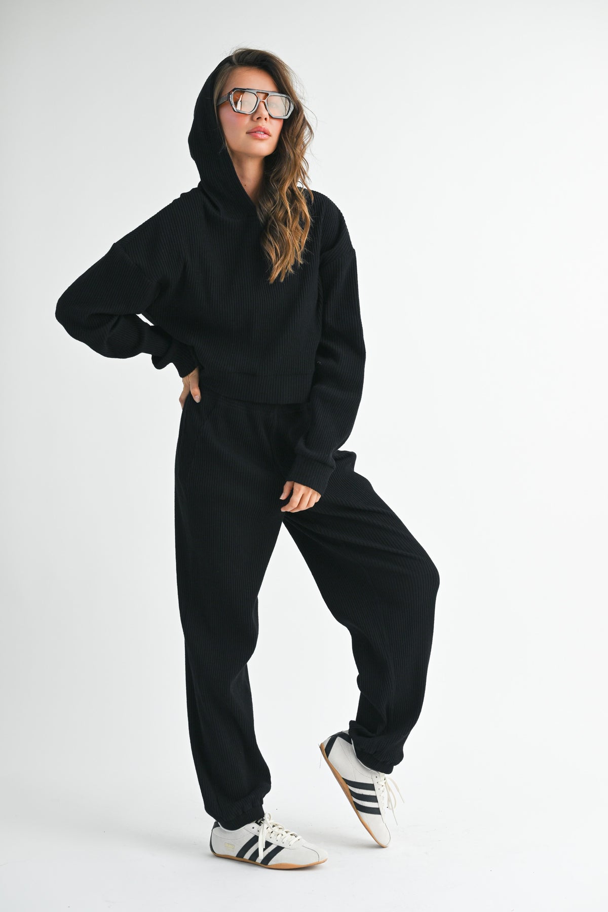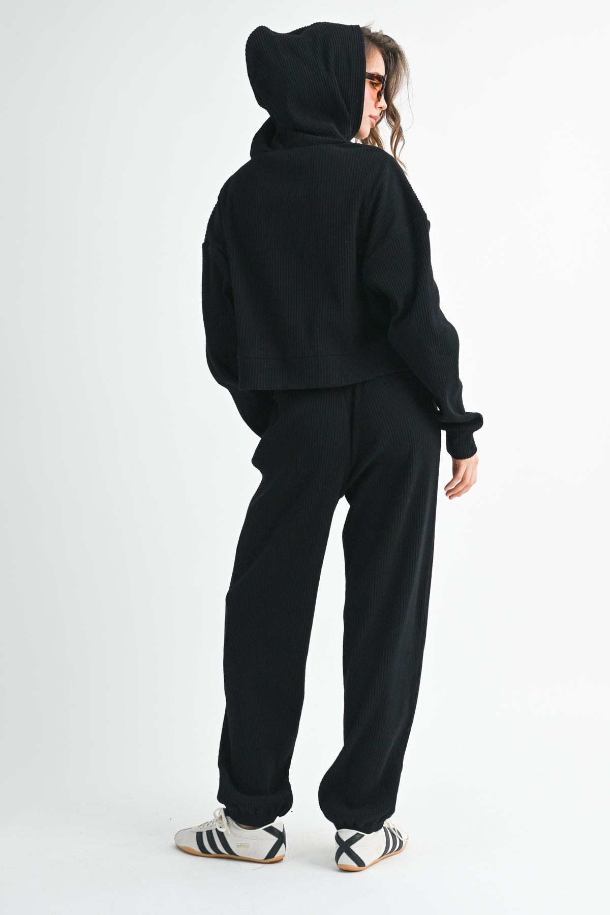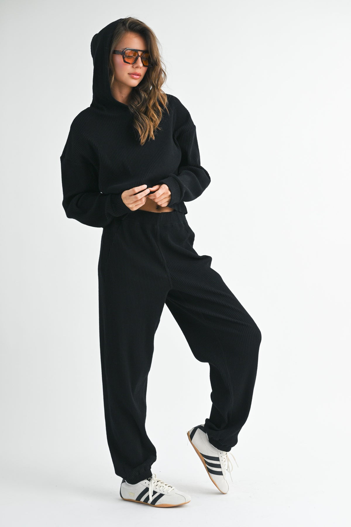 Experience ultimate comfort with the Drawstring Ribbed Lounge Pants, a perfect addition to your casual wardrobe. These high-rise pants are designed with a wide-leg fit and crafted from a soft ribbed knit fabric, ensuring you stay cozy and stylish during your off-duty days. The adjustable drawstring waist offers a customizable fit, making these pants ideal for lounging or easy layering with your favorite tops.