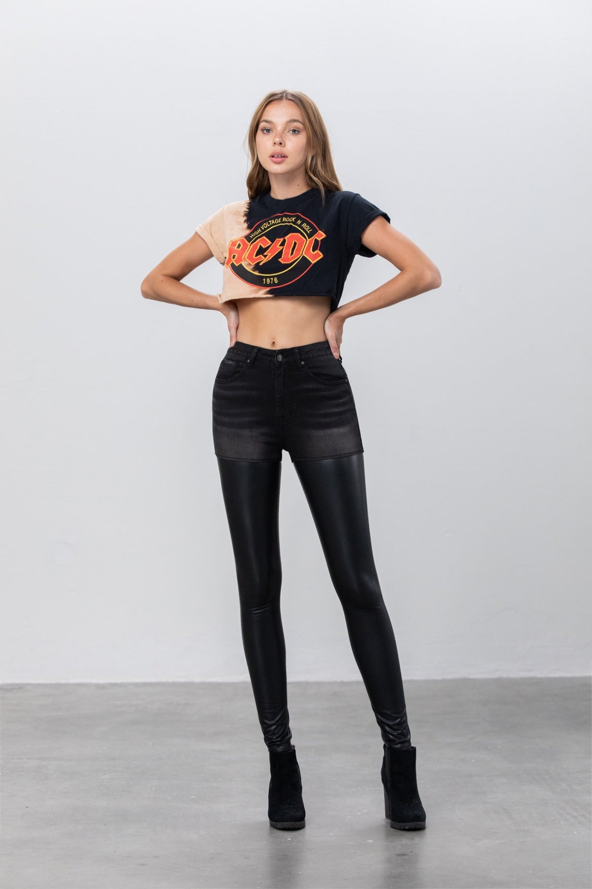 Introducing the High Rise Leather Denim Skinny Pants, a perfect blend of chic style and comfort. These pants are designed for the bold and stylish woman who loves to make a statement. The high-rise cut accentuates your curves while ensuring a comfortable fit, ideal for both day and night outings. With a unique combination of denim and faux leather, these skinny pants bring a modern twist to your wardrobe, perfect for any occasion.