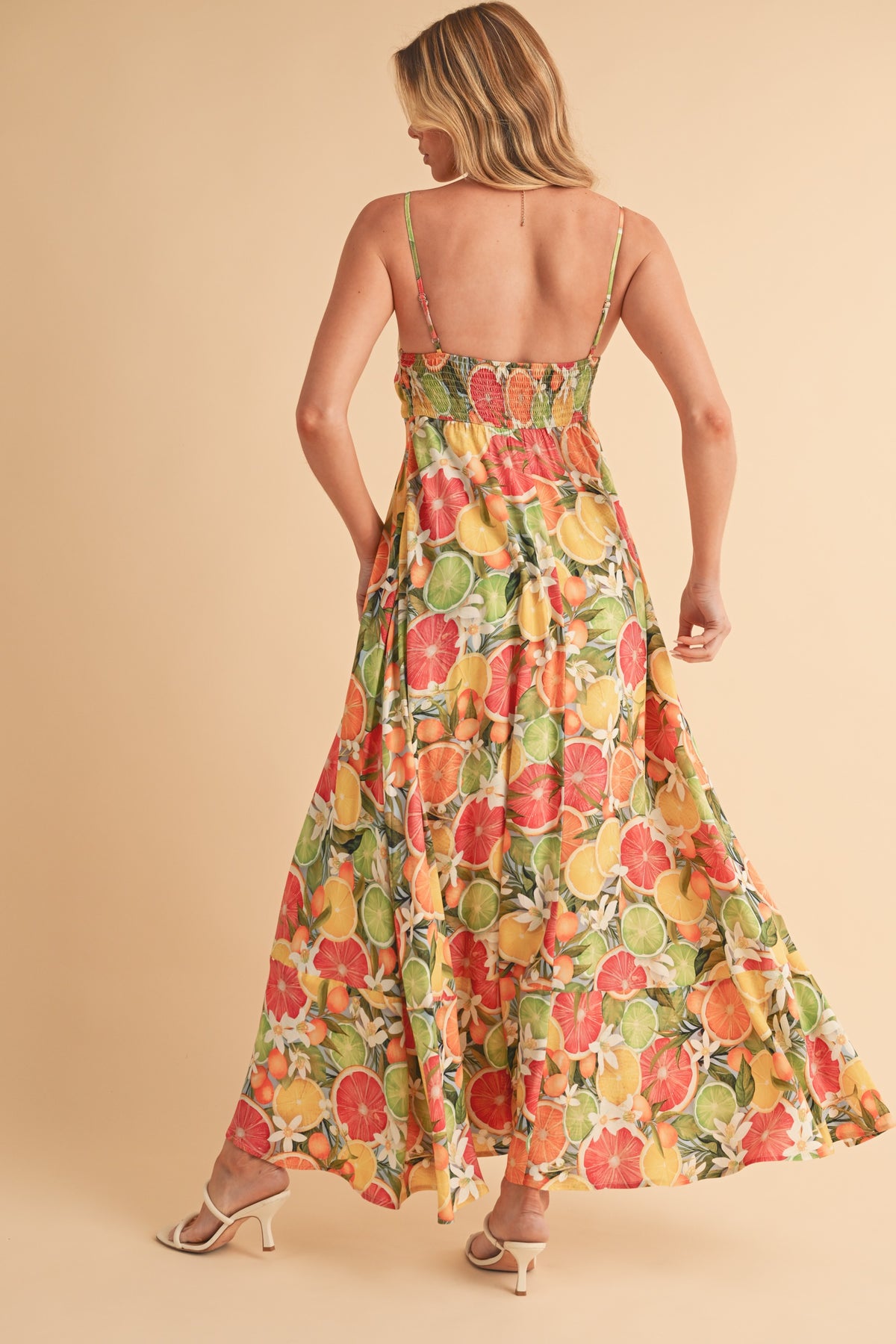 The Citrus Maxi Dress is your ideal companion for sun-soaked days. This dress embodies the essence of summer with its lightweight structure, designed to offer both style and comfort. Whether you're heading to a beach party or a casual brunch, this dress ensures you look effortlessly chic with its relaxed fit and adjustable straps, making it a staple for any warm-weather wardrobe.