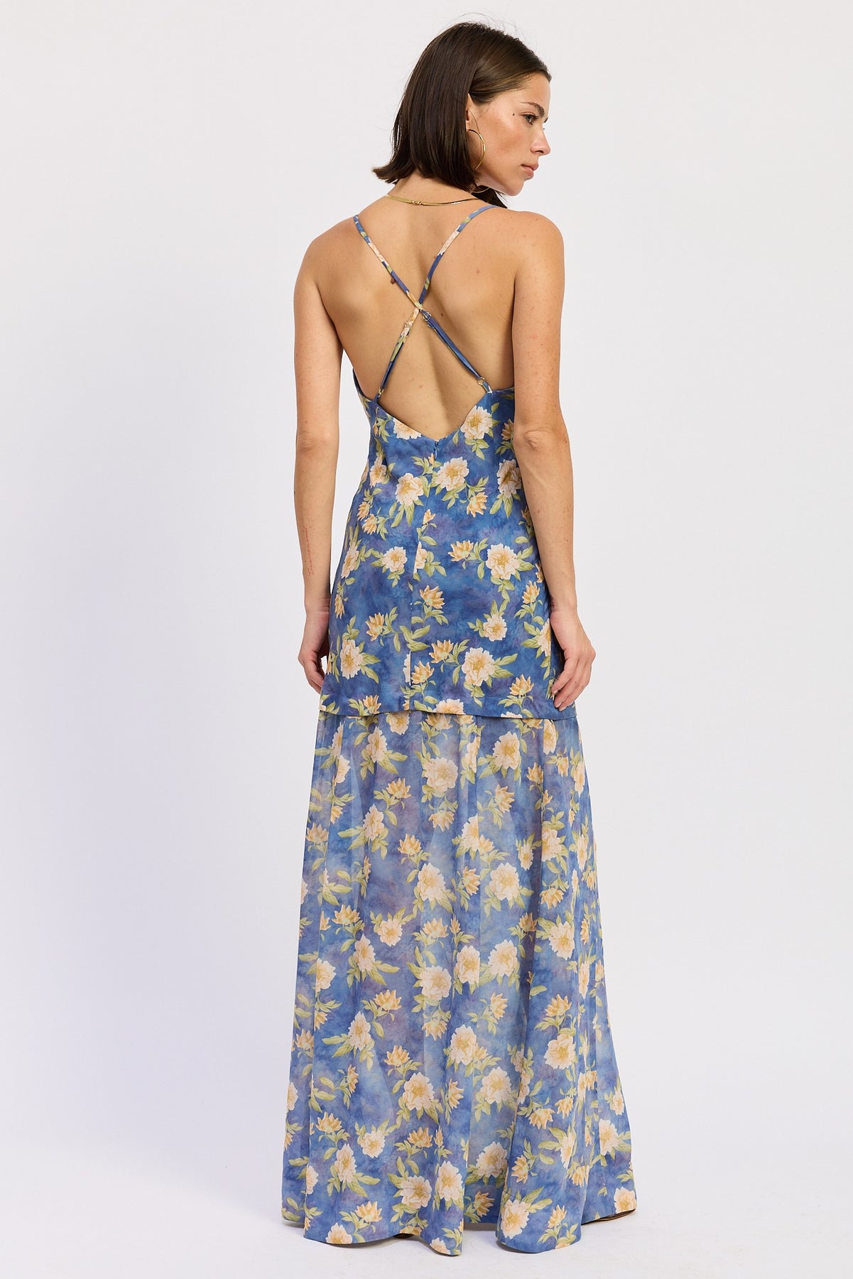 Maxi Floral Cross Tie Back Dress