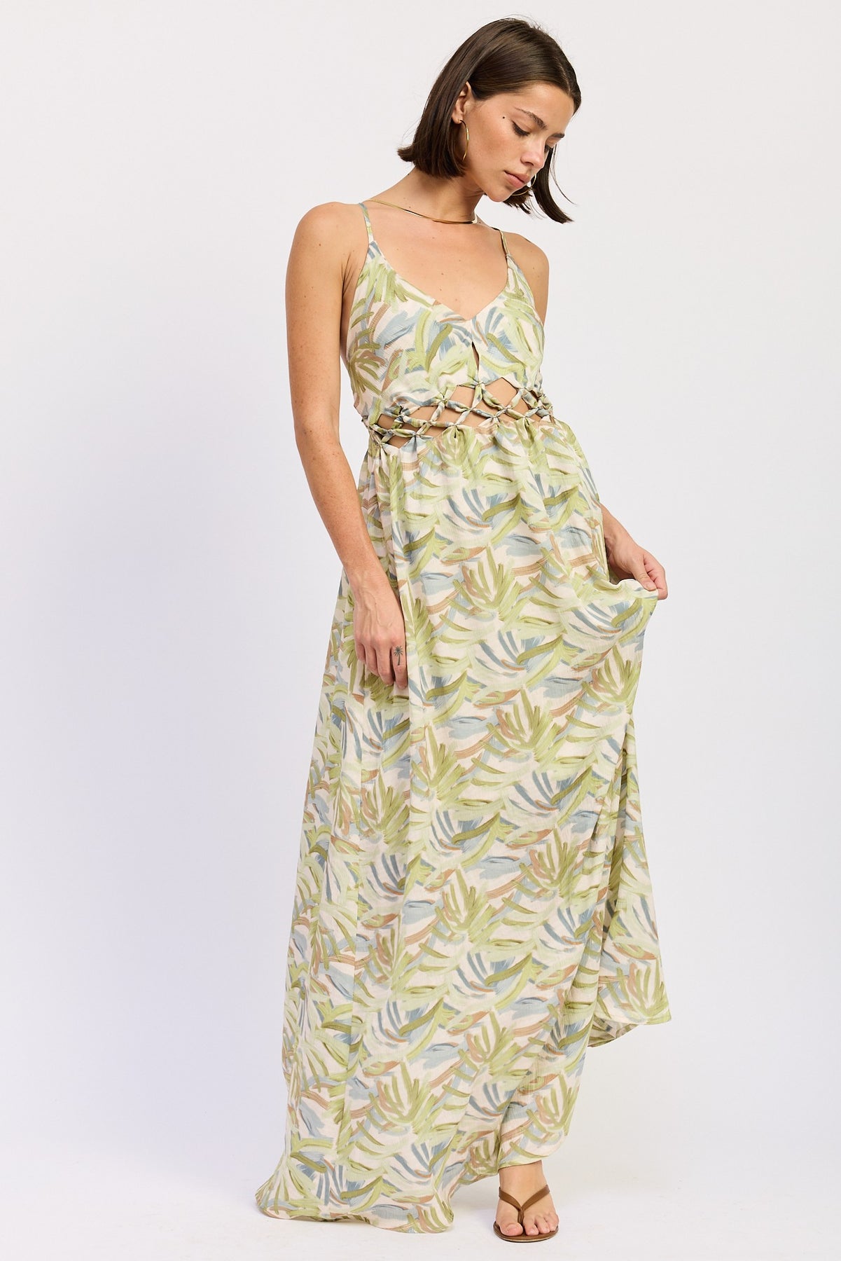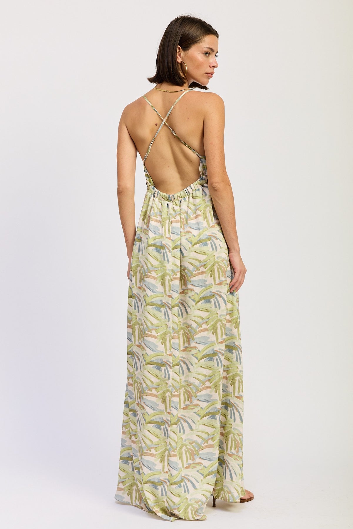 Green Multi Maxi Open Tie Back Dress