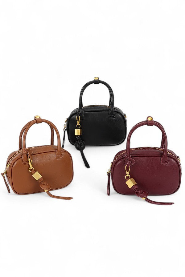 • Design: Sleek top handle complemented by a detachable crossbody strap