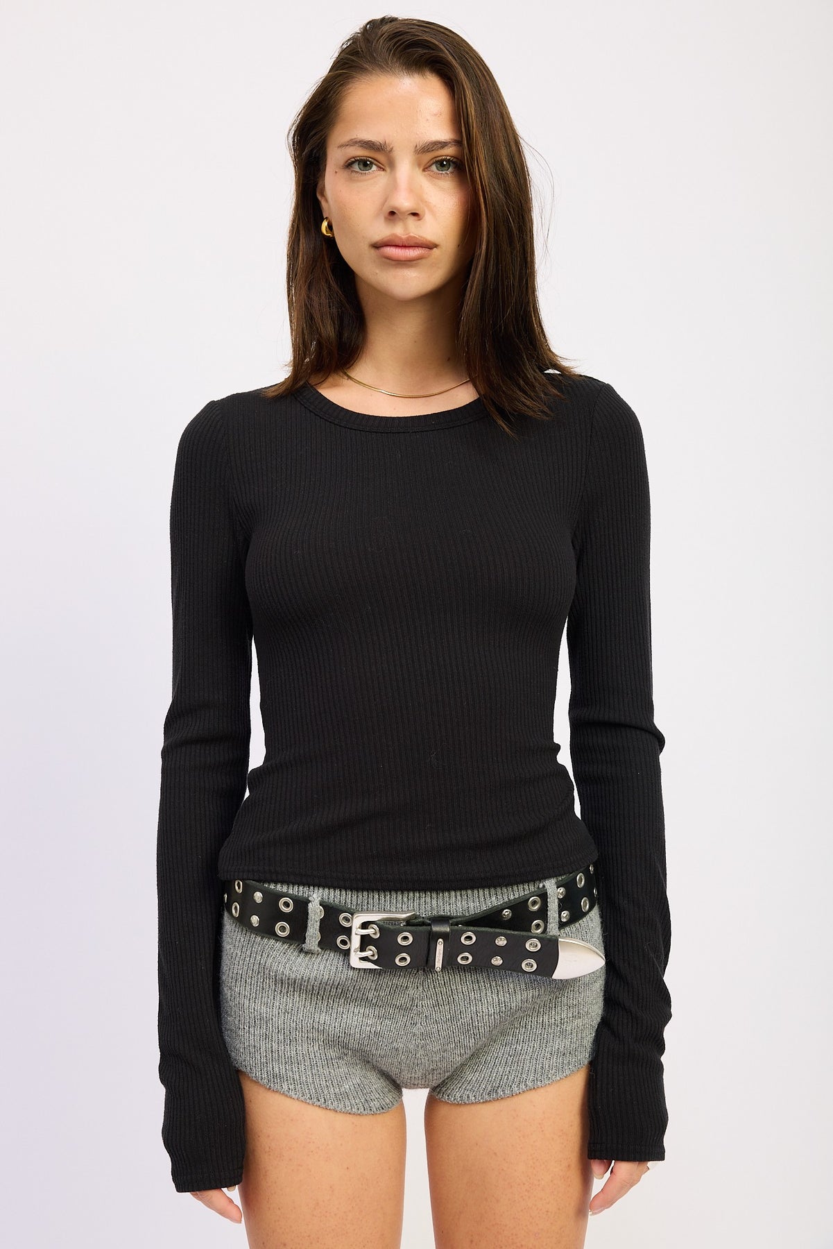 Elevate your wardrobe with this chic and elegant long sleeve ribbed top, designed to offer both comfort and style. Featuring a unique back chain detail, this top effortlessly combines sophistication with a modern edge, making it a perfect choice for both casual outings and special occasions. Pair it with your favorite jeans or skirt for a versatile look that's sure to turn heads.