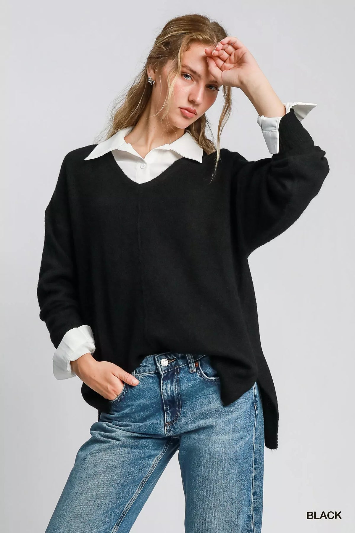 Elevate your winter wardrobe with the Wool Blended Pullover Sweater, a perfect combination of style and comfort. Crafted from a luxurious wool blend, this sweater provides exceptional warmth and softness, making it an ideal choice for chilly days. The elegant V-neckline and loose fit offer a sophisticated yet relaxed look, while the cut edges add a modern twist to this timeless piece. Stay cozy and chic all season long with this must-have knit sweater.