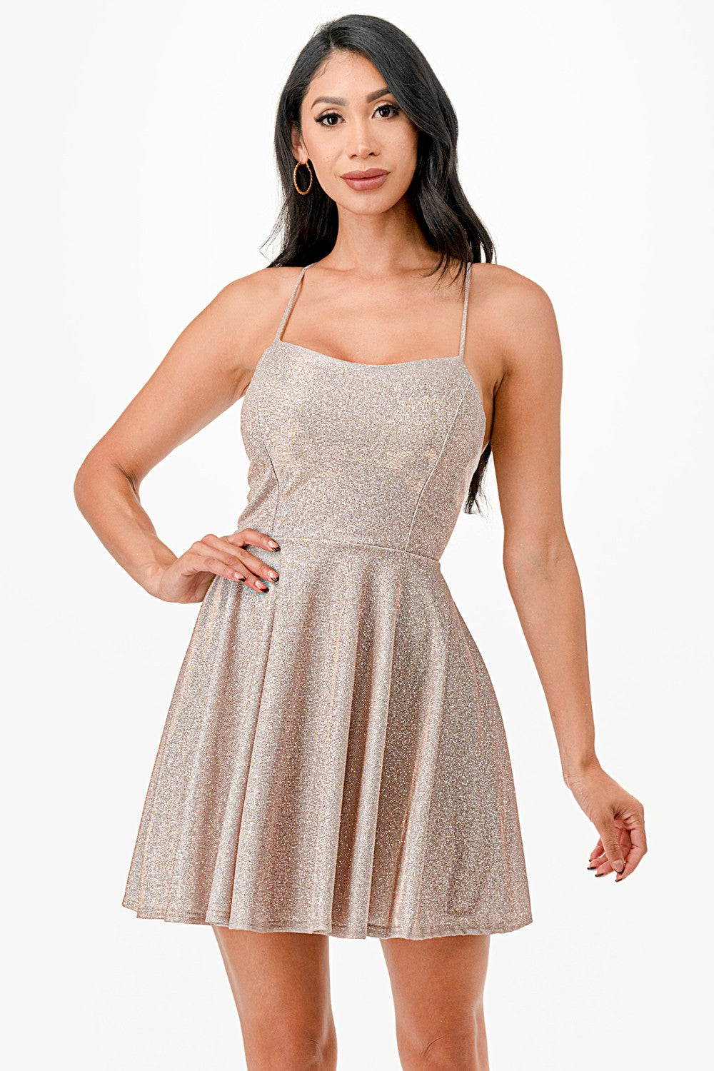 Glittered Fit & Flare Mini Dress with Spaghetti Straps