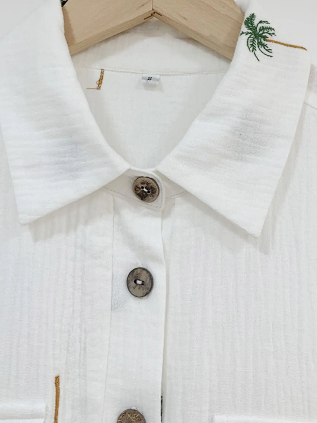 Embrace casual elegance with this Palm Tree Print Short Sleeve Button-Up Romper with Belt, perfect for breezy beach days or a relaxed outing. This chic romper combines comfort and style, offering a playful and vibrant palm tree print that captures the essence of summer. The button-up design adds a touch of sophistication, while the belted waist flatters your figure, making it a versatile addition to your wardrobe.