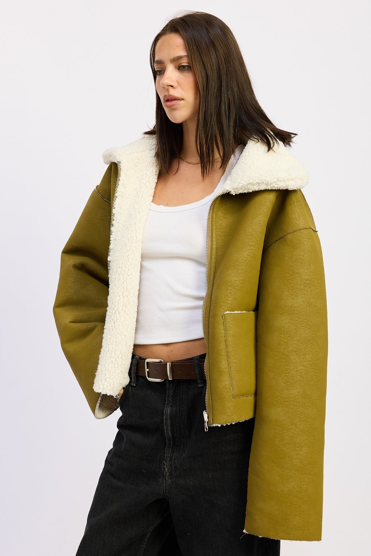 Enhance your winter wardrobe with this versatile and chic reversible suede shearling jacket from Emory Park. Designed to offer two distinct looks in one, this jacket is perfect for adding a sophisticated touch to any outfit. Whether you prefer the luxurious feel of suede or the cozy warmth of shearling, this jacket has got you covered. Perfect for casual outings or more formal occasions, it's a must-have piece for the fashion-forward woman.
