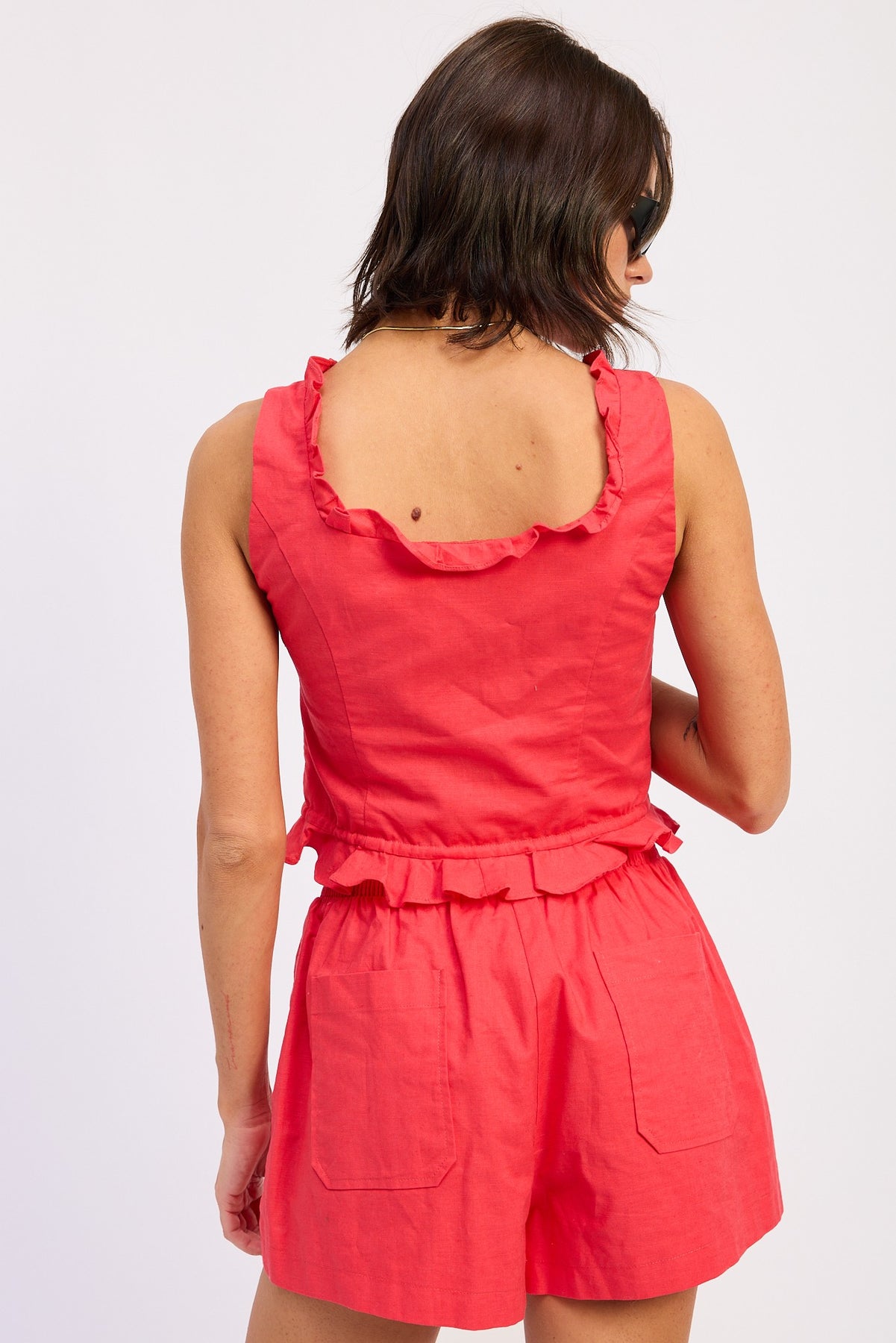 Red Ruffled Tank With Button Front