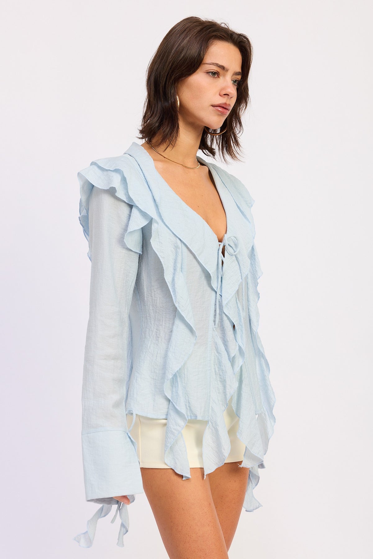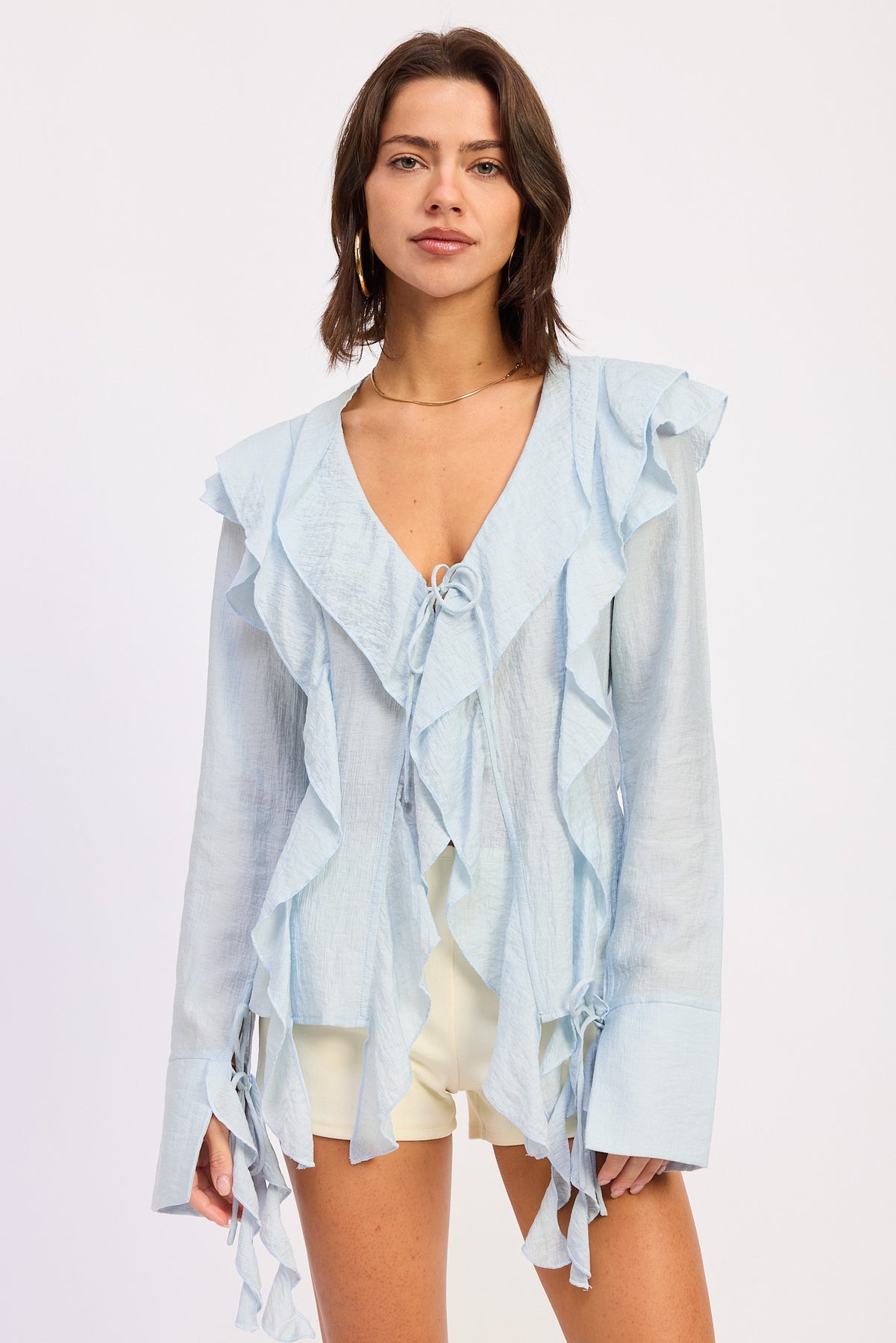 Style: Tie front with ruffle detailing
