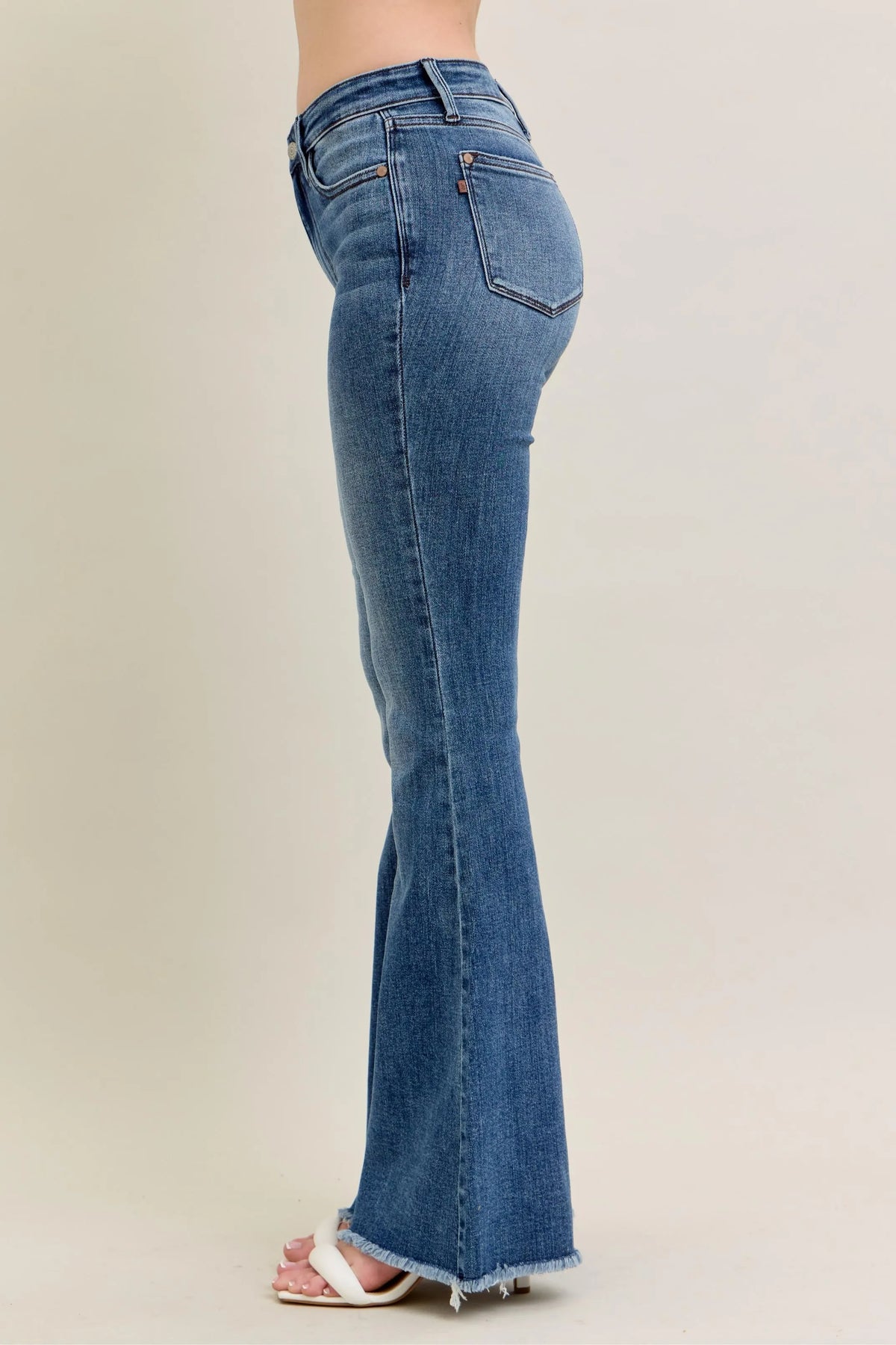 Step into the world of vintage-inspired fashion with the Judy Blue Full Size Mr Vintage Wash Flare Jeans. These premium flare jeans effortlessly blend classic allure with modern flair, offering a high-rise waistline and dramatic flared leg for an elongated silhouette. The raw hem adds a trendy touch, while the slightly stretchy fabric ensures comfort all day long. Perfect for both casual outings and semi-formal occasions, these jeans promise a flattering fit and enduring style.